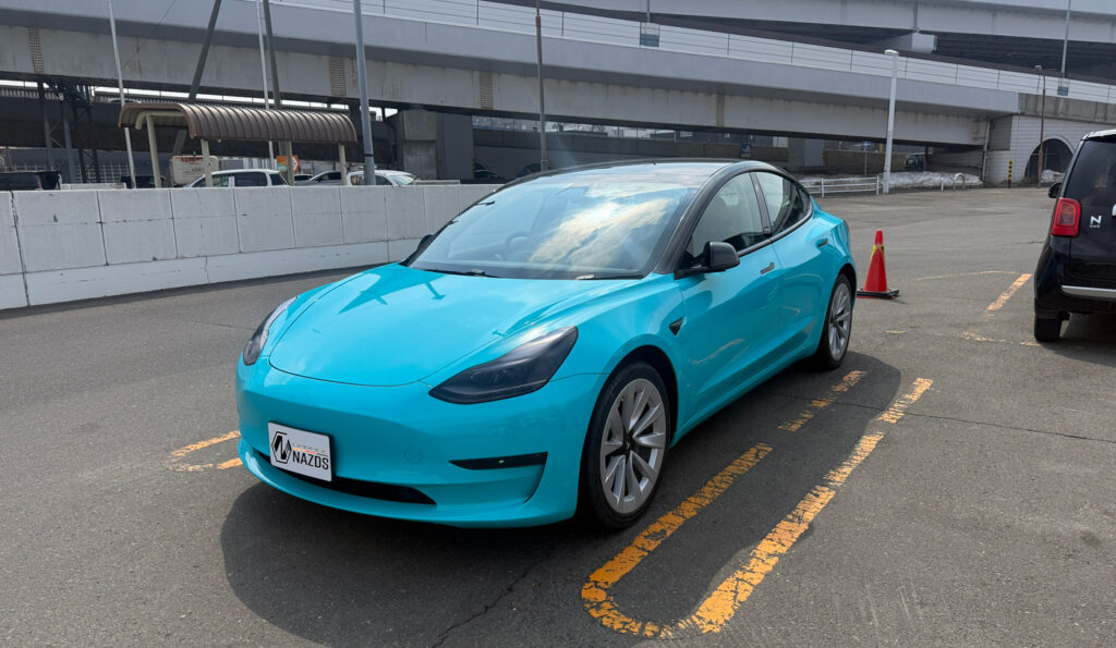 自分のモデルYで北海道に行く時間がなかなか取れなかったので、今回は北海道でレンタルする事に。いくつかテスラがレンタルできそうなところがあったのですが、めっちゃかっこいいラッピングのテスラモデル3を見つけてしまいました!こんなかっこいいモデル3がレンタルであるなんて・・・。