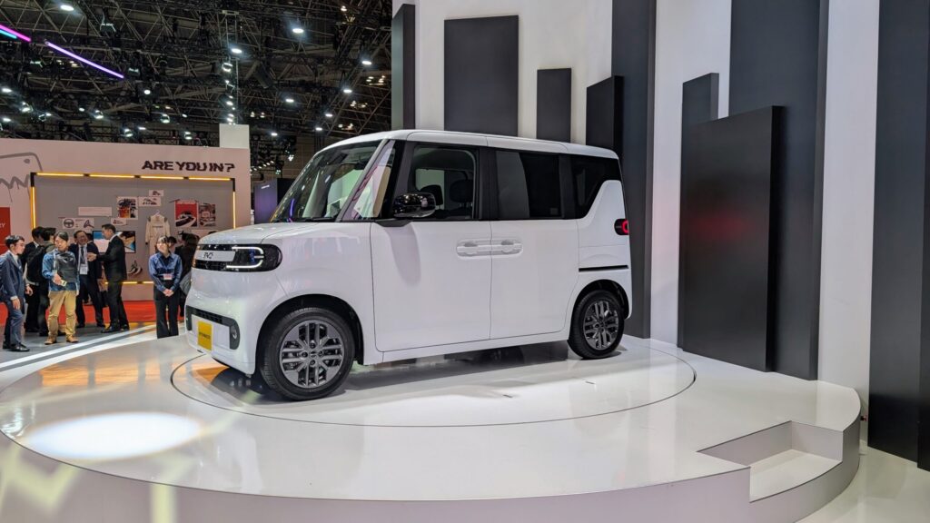 ミニバンタイプの4人乗りで、サイズは軽自動車のほぼ最大サイズ、3,395mm(全長)×1,475mm(全幅)×1,800(全高)mm。左右スライドドアとなっています。搭載バッテリはBYDのブレードバッテリーが搭載され、その容量は公開されなかったものの、ショートとロングレンジの2種類を用意し、2026年の夏に発売するとのこと。