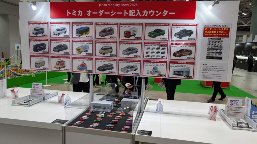 また、人気のトミカコーナーも2023年同様に用意されています。Japan Mobility Show限定のトミカはすぐに売り切れてしまいますので、トミカ狙いの人は、事前にどれを購入するか決めて早めにこのブースを訪れましょう。